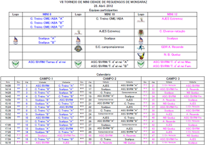 Calendário do VII Torneio Mini Cidade de Reguengos