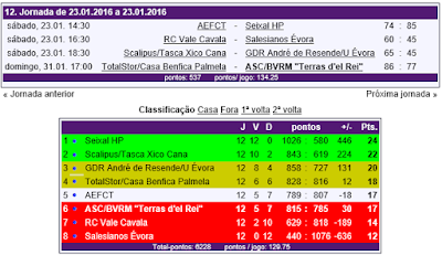 Com esta jornada dupla terminou a 1ª fase do Campeonato Regional, ficando o nosso clube em primeiro lugar e assim garantindo a realização da FINAL 4 em Reguengos de Monsaraz, nos dias 13 e 14 fevereiro.